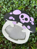 The perfect purse companion for the goth/ emo forager or fungi fan! Storage space is about 8.5x8.5 and can comfortably fit a smartphone, wallet, essentials and any cool rocks you find on your travels!